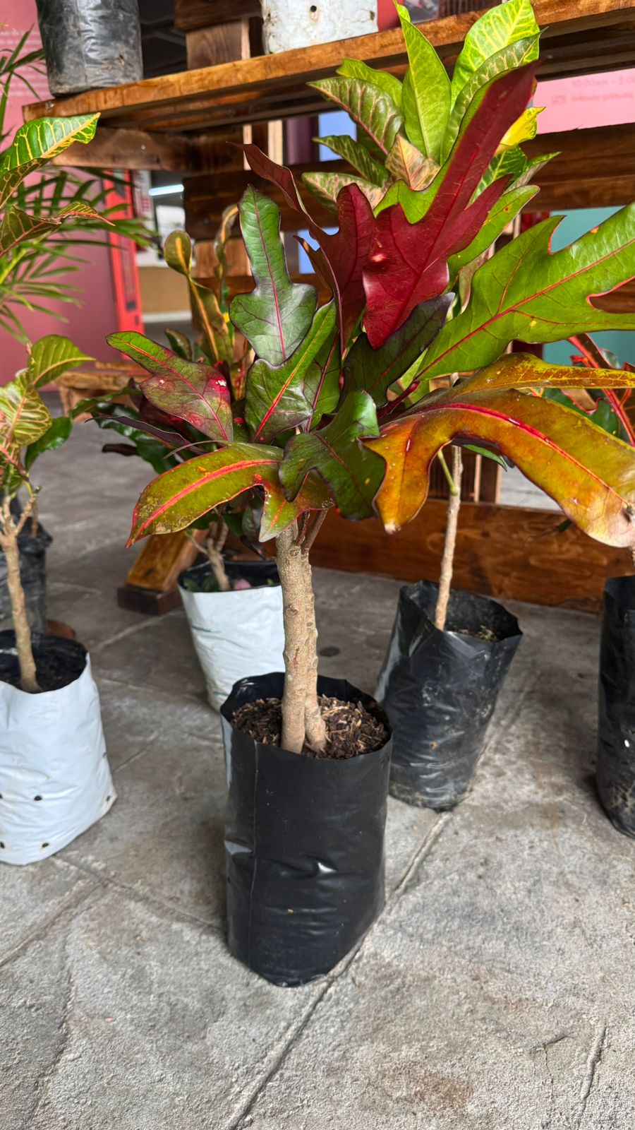 Plantas ornamentales muy coloridas, con hojas en tonos verdes, amarillos, rojos y naranjas. Prefieren sol o semisombra, riego regular y climas cálidos.